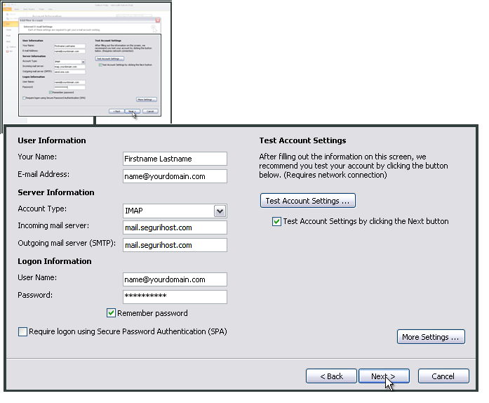 Configuración del servidor SMTP en Outlook 2010