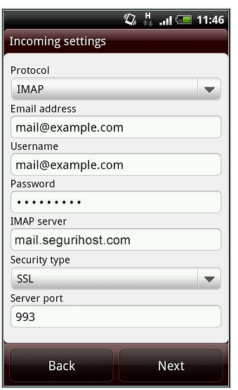 IMAP server: mail.sudominio.com