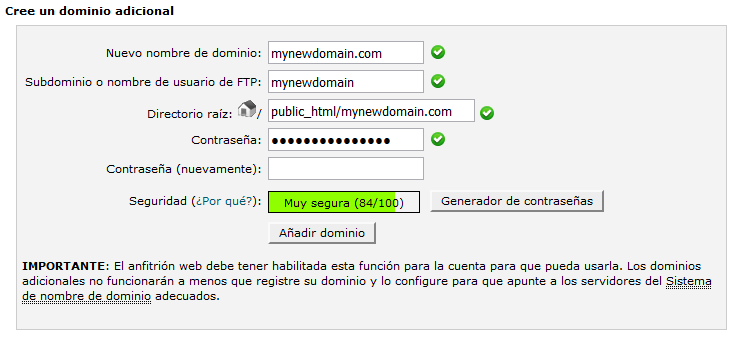 Un dominio adicional es un nombre del dominio que que señala a un subdirectorio dentro de su cuenta. Los dominios adicionales se deben registrar aparte del dominio que usted posee y configurarlos para que los dns apunten a el servidor de su sitio web. A efectos de navegación, será como un dominio independiente del principal.