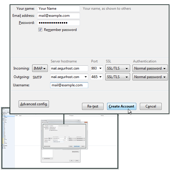 Your Name (Su nombre) es el nombre que aparecerá cuando los usuarios reciban mensajes de correo electrónico a través de Thunderbird.